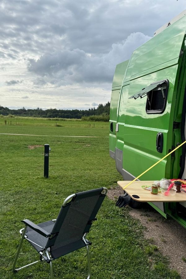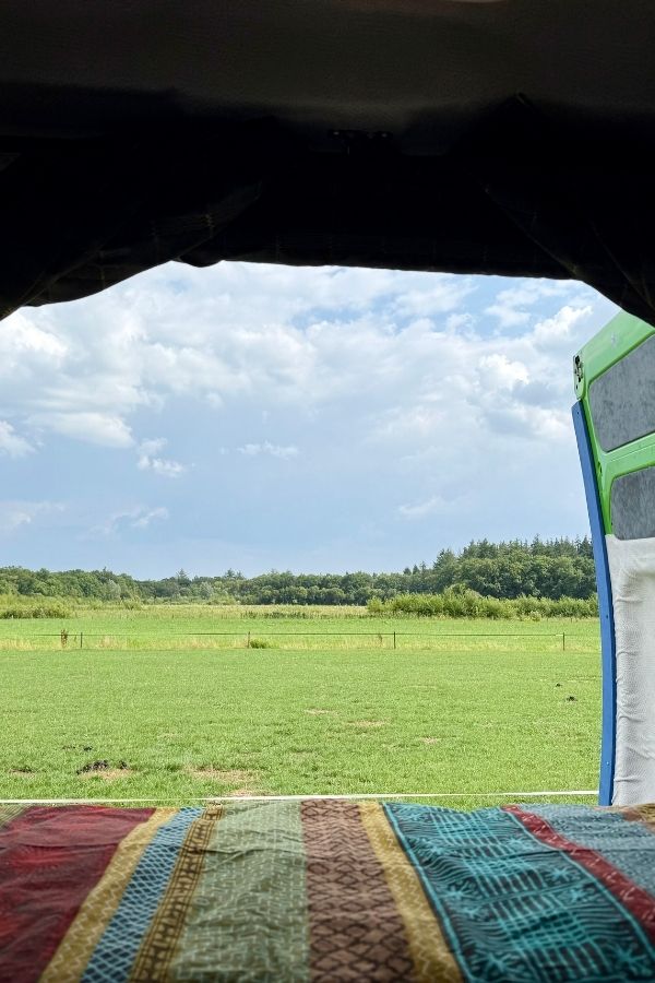 Auf dem Campingplatz Veldgeluck, unserem ersten Campingplatz in den Niederlanden, haben wir so nette Gastgeber kennengelernt, die wir niemals getroffen hätten, wenn wir mit dem Auto gereist wären. Wir standen dort auf einer großen Wiese mit wunderschönem Ausblick auf den Wald und eine Pferdekoppel direkt am Stellplatz. Das kleine Mädchen in mir war richtig glücklich.